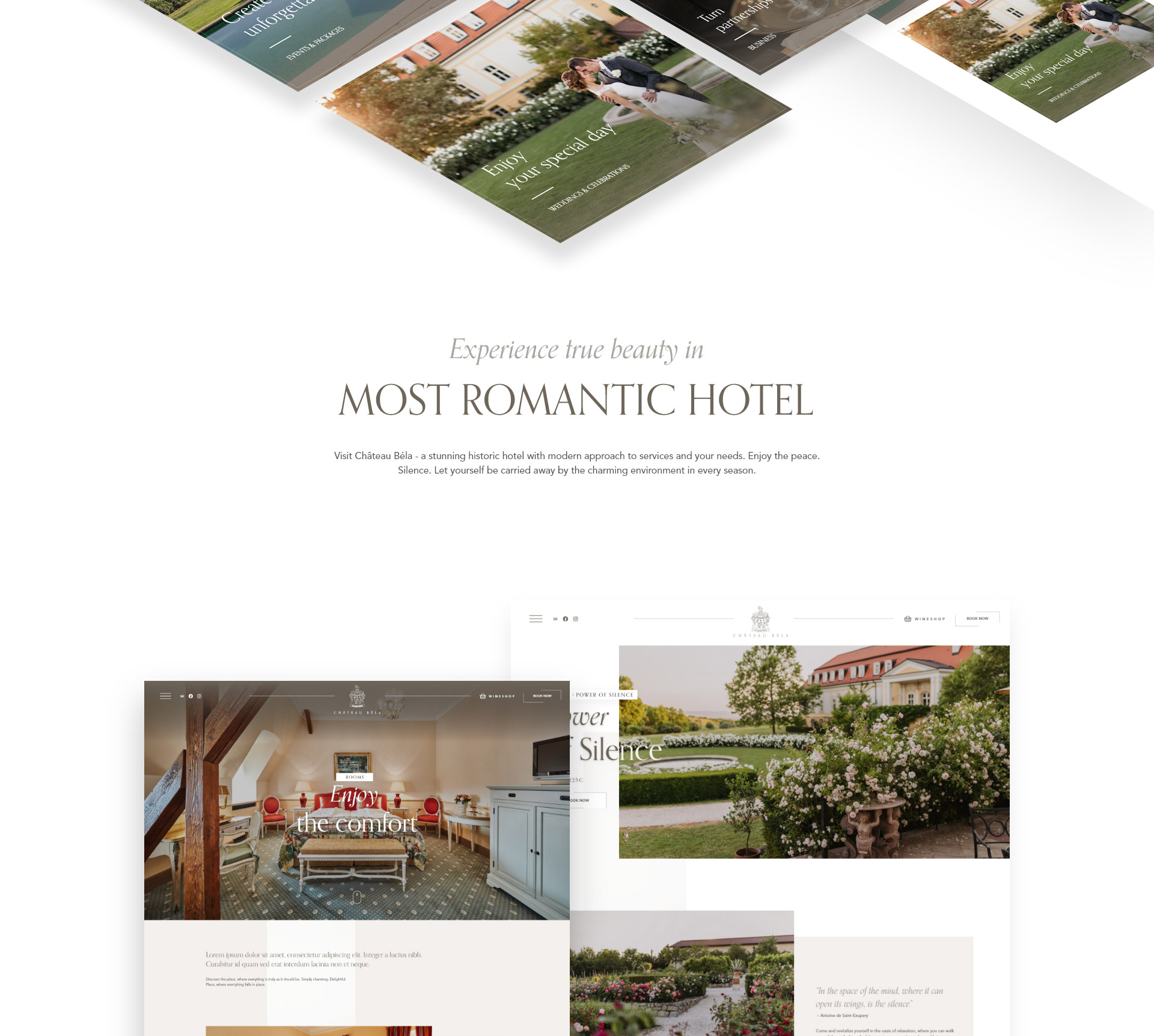 Château Béla - luxusný hotel, ktorý je zároveň kaštieľom s unikátnym dizajnom interiéru a modernými službami. S touto myšlienkou bolo potrebné pracovať aj pri tvorbe nového webu, ktorého úlohou bolo vytvoriť hotelu novú a jedinečnú online identitu.