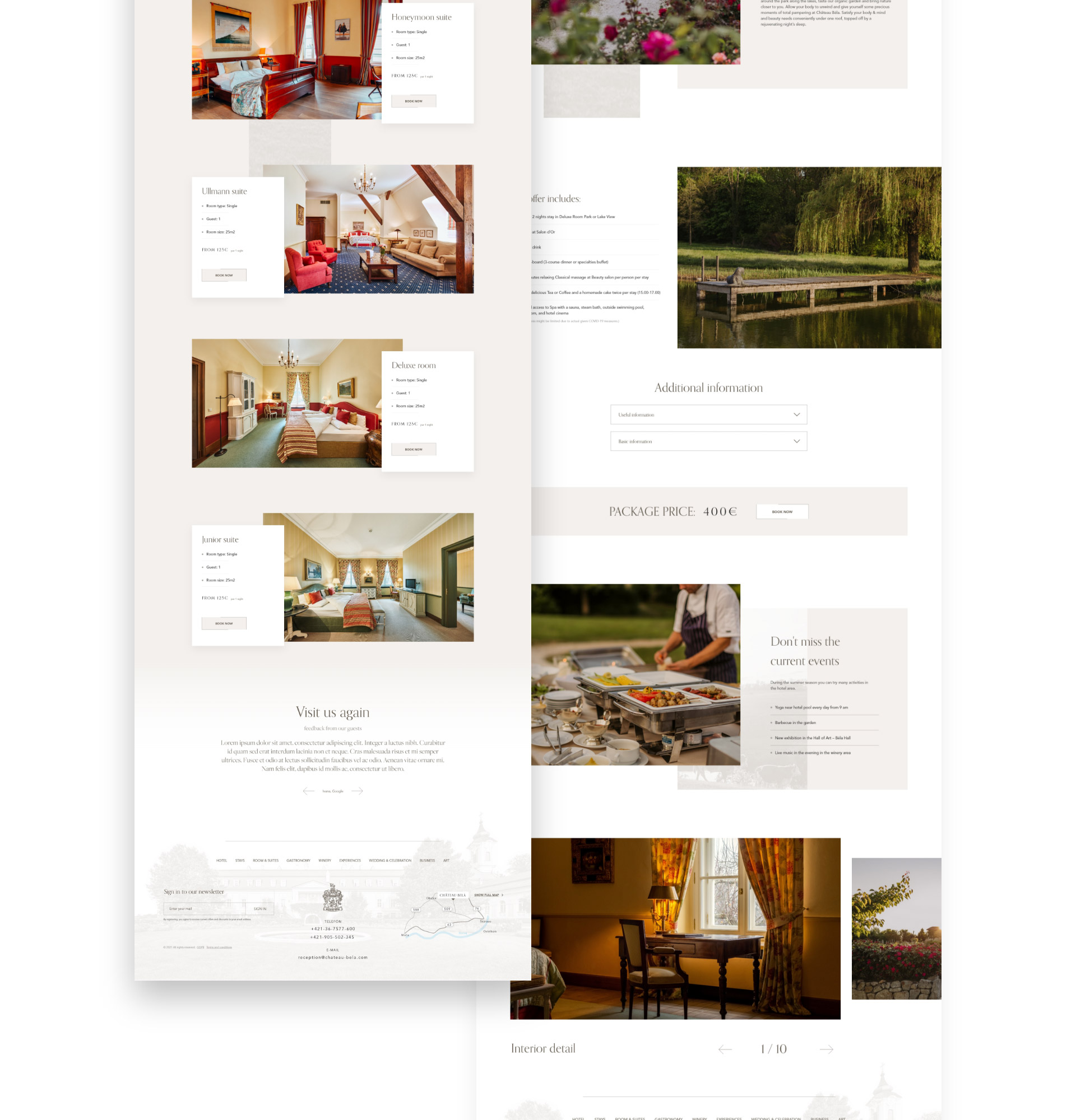 Minimalistický a čistý, jednoduchý a pútavý zároveň. Custom dizajn hotela bol vytváraný na mieru klienta a zariadenia tak, aby už zo samotnej stránky bolo cítiť nádych elegancie, ktorá sa snúbi s jeho starobylým šarmom. Web bol napojený na CMS BIGERON, vďaka ktorému má klient možnosť nielen jednoduchej editácie ale aj rýchlej tvorby nových stránok v nastavenom dizajne.